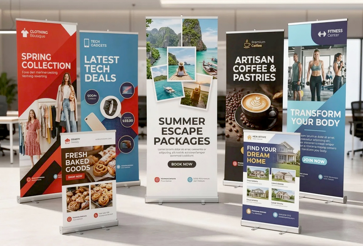 Portable, professional banner stands that deliver your message clearly—perfect for events, lobbies, and promotions.