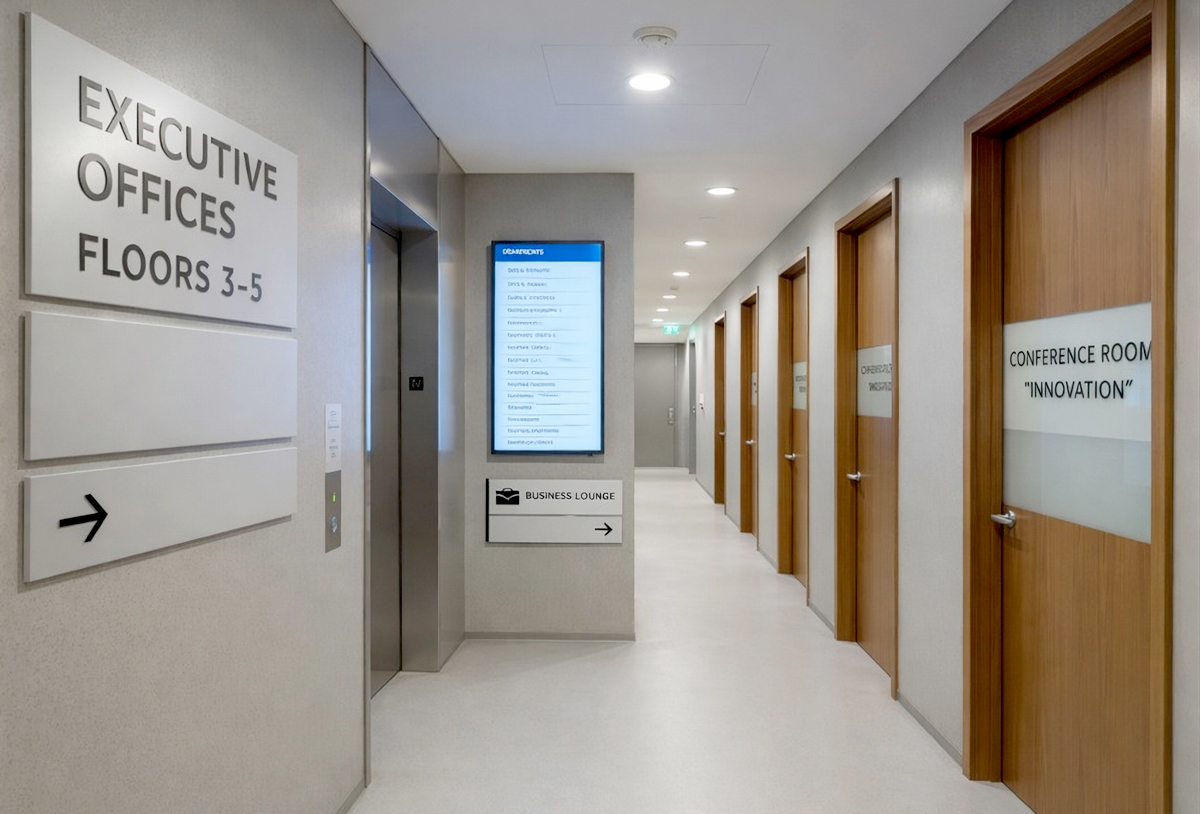 Used to label rooms, offices, departments, and key areas, identification signs help visitors quickly recognize where they are and confirm they’ve arrived.